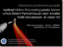 Pada sesi pertama, saya diberi kesempatan membawakan presentasi laporan TA saya. Menurut Ai dan Ilma, presentasi saya di waktu sidang jauh lebih baik pada saat latihan dengan mereka. Syukurlah. Selama ini saya berdoa agar saya dapat menyampaikan presentasi TA dengan tenang, menggunakan bahasa baku yang baik, dan tidak terburu-buru. Selain itu, menurut teman-teman saya juga, slide presentasi saya juga bagus. :) Saya pun mengakui, saya suka dengan desain dan tema yang saya gunakan pada slide presentasi saya. Saya membuat desain slide ini sendiri, dengan mengambil gambar latar belakang dari internet tentunya, ditambah dengan sedikit keahlian photoshop amatir. :D Berikut ini beberapa contohnya.